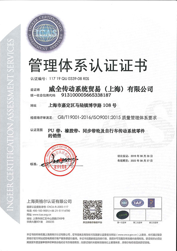 ISO9001质量管理体系认证证书