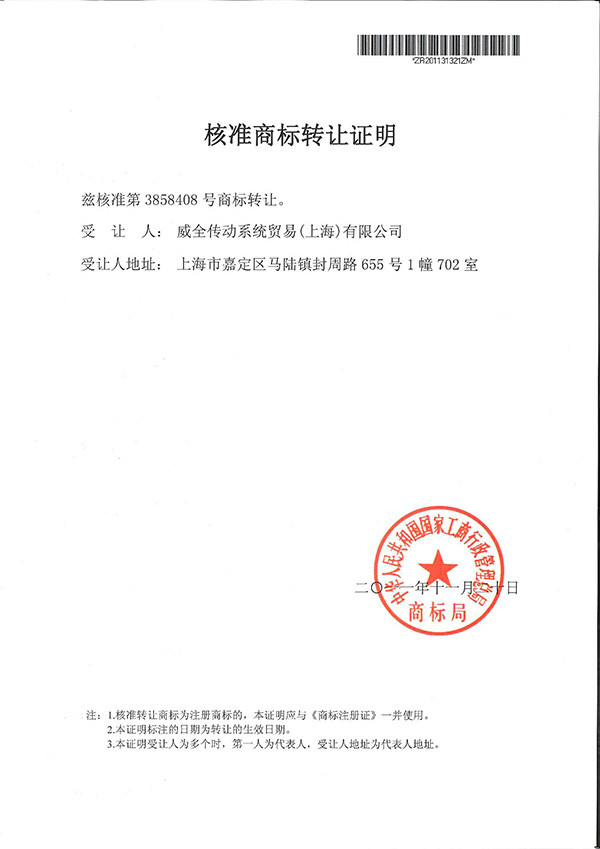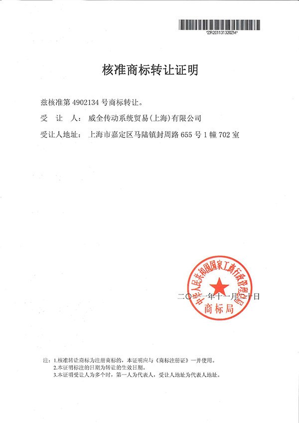 welltrans商标转让证明